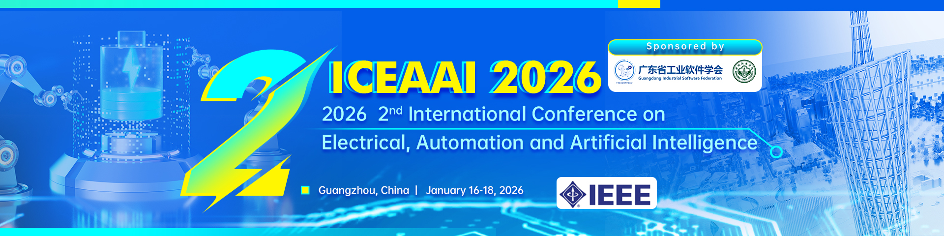 Against the backdrop of rapid global economic and social development, electrical engineering, automation technology, and artificial intelligence (AI) are constantly driving a new wave of industrial revolution. These technologies are not only playing an increasingly important role in traditional fields such as manufacturing, energy, transportation, and healthcare, but are also opening up new application areas such as digital economy, smart cities, and sustainable development. In addition, with the development of Internet technology and the Internet of Things (IoT), the integration of electrical, automation and AI technology has become an inevitable trend. Through the integration and breakthrough of intelligent technology, the future industrial production and social operation will be more efficient, environmentally friendly and intelligent. In order to explore the latest achievements and future trends in these fields, the 2026 2nd International Academic Conference on Electrical, Automation and Artificial Intelligence (ICEAAI 2026), is scheduled to be held in Guangzhou, China from January 16 to 18, 2026.